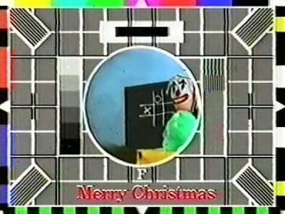 And if you're not scared enough yet, here's a late seventies bit of Test Card-embellishing whimsy from the 'backroom boys', with 'Clown' surveying your pathetic 'gifts' with mocking disdain, and 'Girl'... well, where the fuck is she?!? Making a list, and checking it twice, no doubt...
